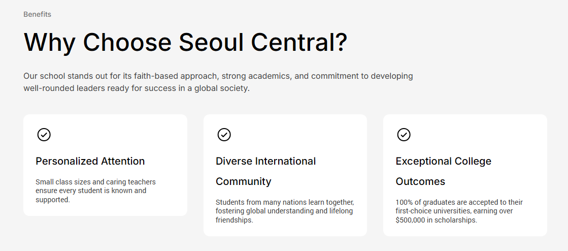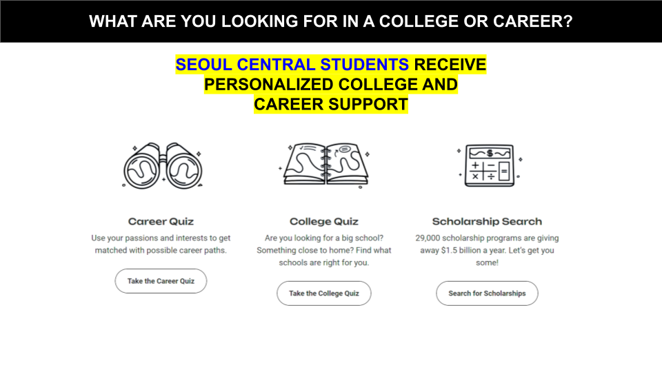 At Seoul Central International, we are dedicated to cultivating excellence in character, academics, and community service, equipping our students to exceed the demands of today’s world. Our passionate educators and dedicated staff inspire a love for learning, encouraging students to engage deeply with academic concepts, develop confident problem-solving skills, and cultivate a heart for serving others. By nurturing both intellect and character, we empower our students to make a meaningful impact in their local and global communities, building a brighter, more compassionate future.